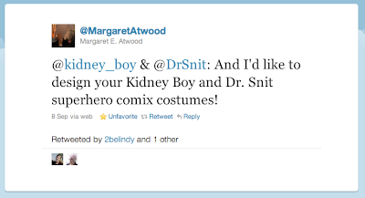 This has been wonderful and exciting. How cool is it to exchange with an author I love and respect. It demonstrates how small the world can be. Everyone go out and read Margaret Atwood. She does a great job of looking at where the world is going and extrapolating it forward into a unique, detailed and terrifying future. Start with Oryx and Crake, but I liked The Year of the Flood better.